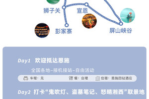 2.由于此产品游览区域属于恩施土家族苗自治州,经济发展缓慢,物资匮乏,旅游资源条件有限,无法与一二线城市旅游资源比较,如遇相关问题敬请谅解