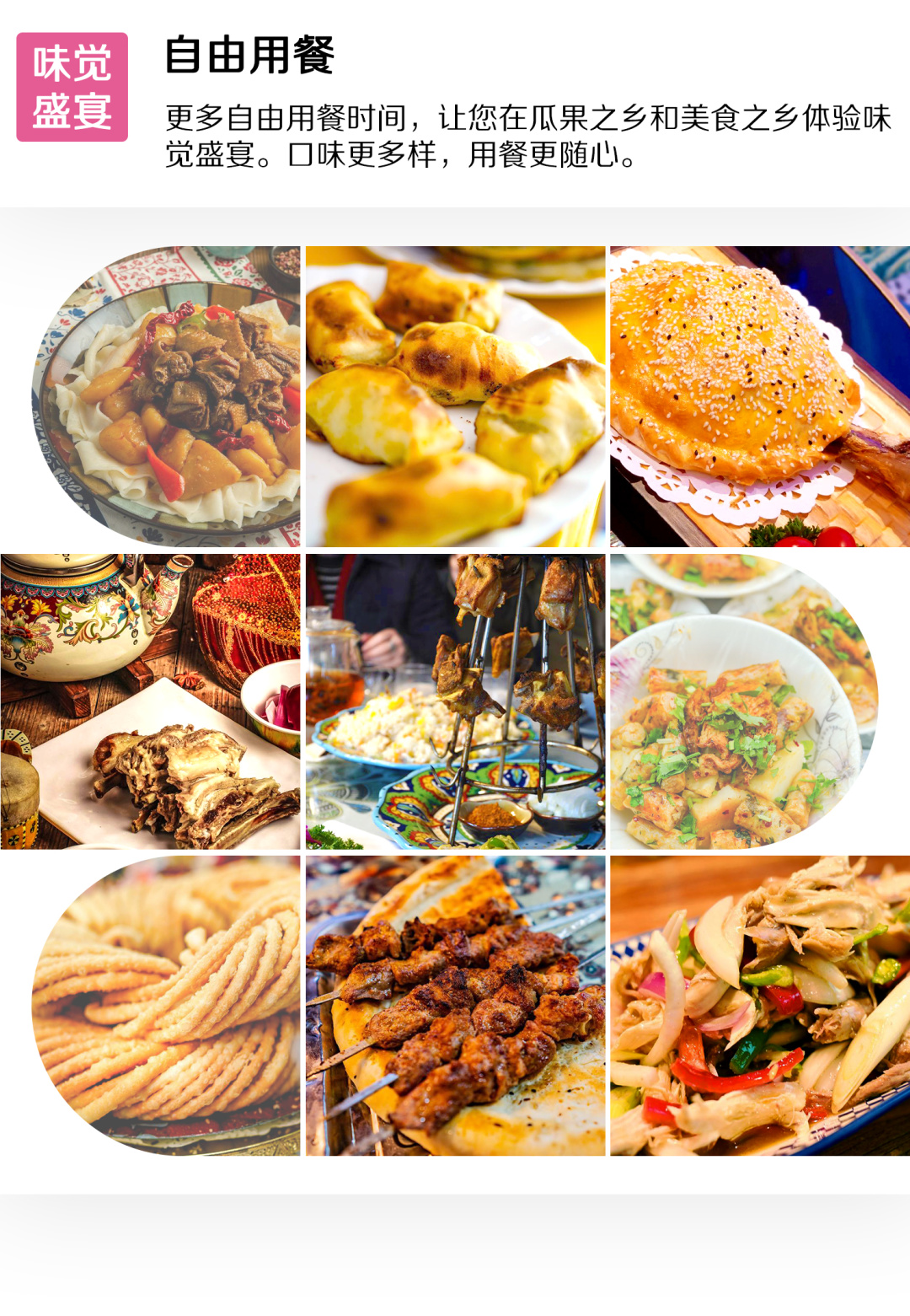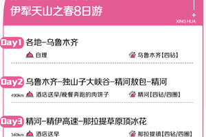 3. 全程景区门票+区间车:独山子大峡谷门票、那拉提草原门票+空中草原区间车、吐尔根杏花沟门票+区间车、恰西草原门票+区间车、天山花海门票+电瓶车、大西沟杏花谷门票+区间车、赛里木湖门票+区间车、木特塔尔沙漠门票+区间车;