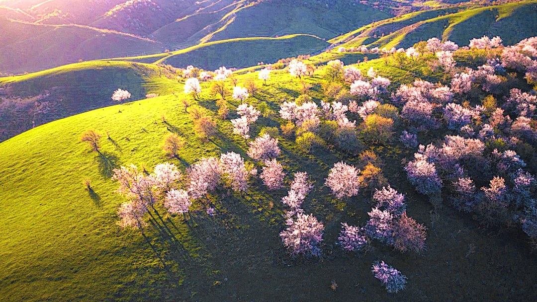 今日早起乘车前往"新疆早春顶流"——吐尔根杏花沟。这里拥有3万多亩公元14世纪遗留的原始野生杏树林,每年3月底至4月中旬花期到来时,漫山遍野的粉白杏花如云似霞,在起伏的山地上铺展成壮阔的"粉色云海",是摄影爱好者的天堂。下午离开杏花沟,前往酒店入住。
