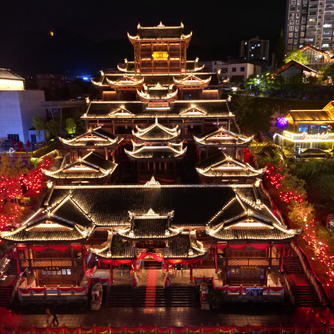 穿一身土家盛装拍照,看一场民俗展演,在篝火旁跟着节奏起舞,让烟火气与民族风。