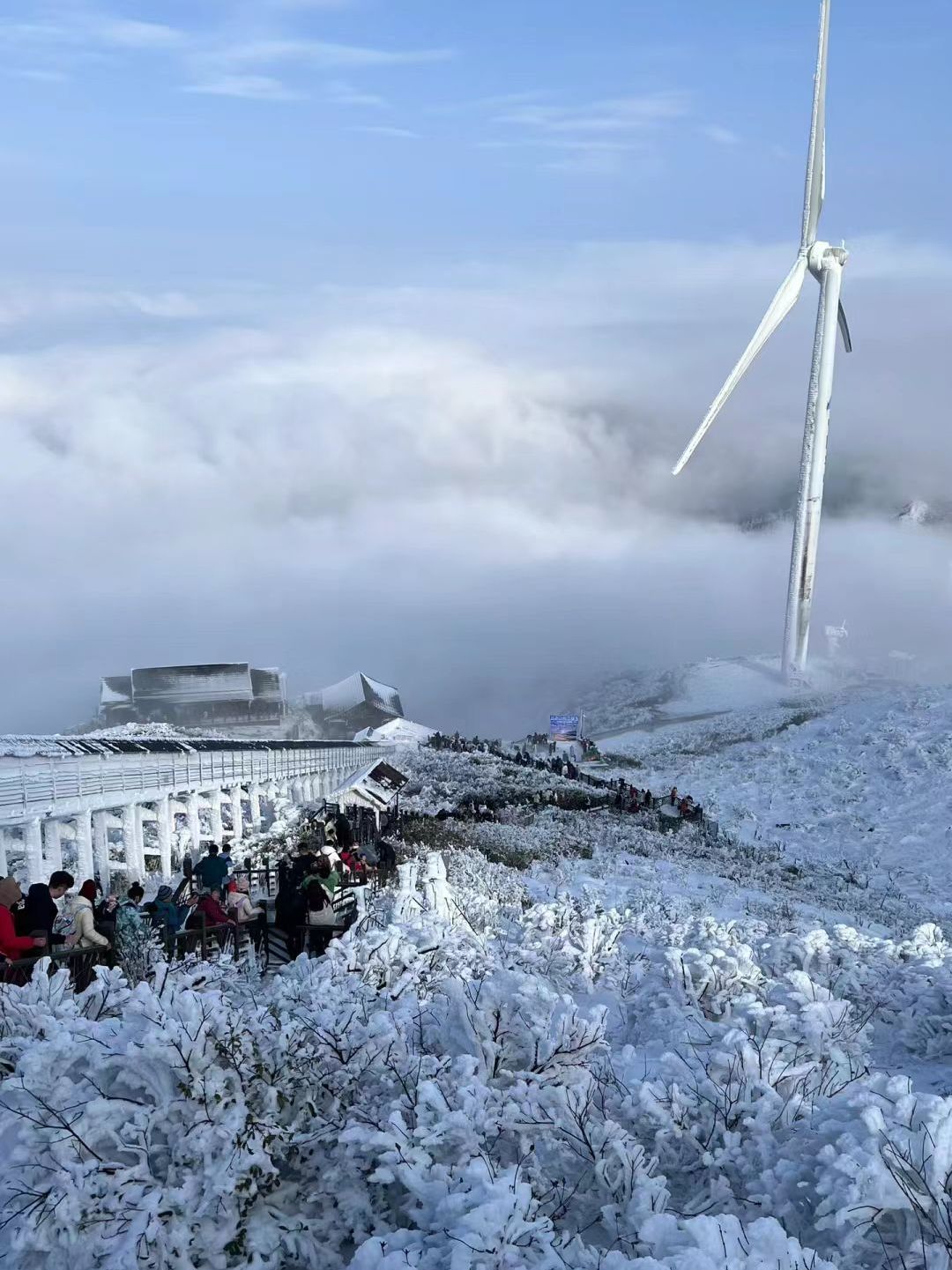 13:00 继续漫步在幔绕群峰的云上世界/银装素裹的冰雪世界,一脚踏两省,让人流连忘返