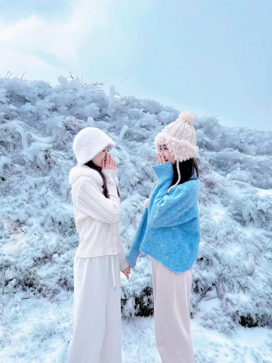 雾凇的形成需要低温高湿的空气环境,所以不一定每次出行都看到罕见的雾凇美景。按照往年经验,12月-2月期间,云冰山很大概率都是有冰雪雾松的。