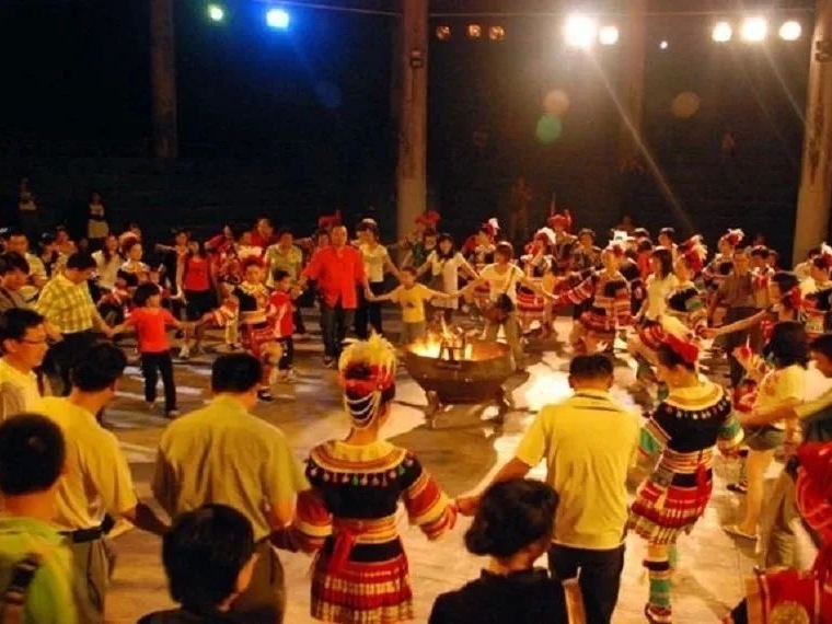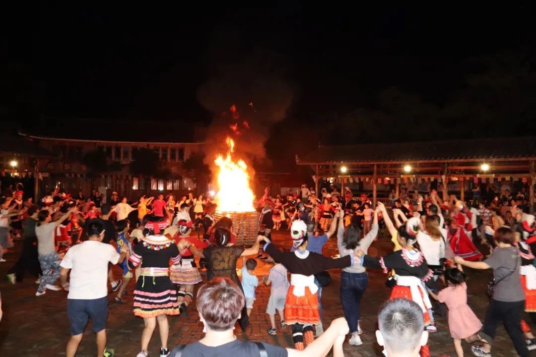 18:00 到达【油岭歌舞堂】篝火晚会会场,品尝瑶寨特色美食——瑶王长桌宴。适时开启篝火晚会及欣赏瑶寨歌舞表演,与瑶族"阿贵"及"沙腰妹"对饮瑶酒,手拉手共跳瑶家舞